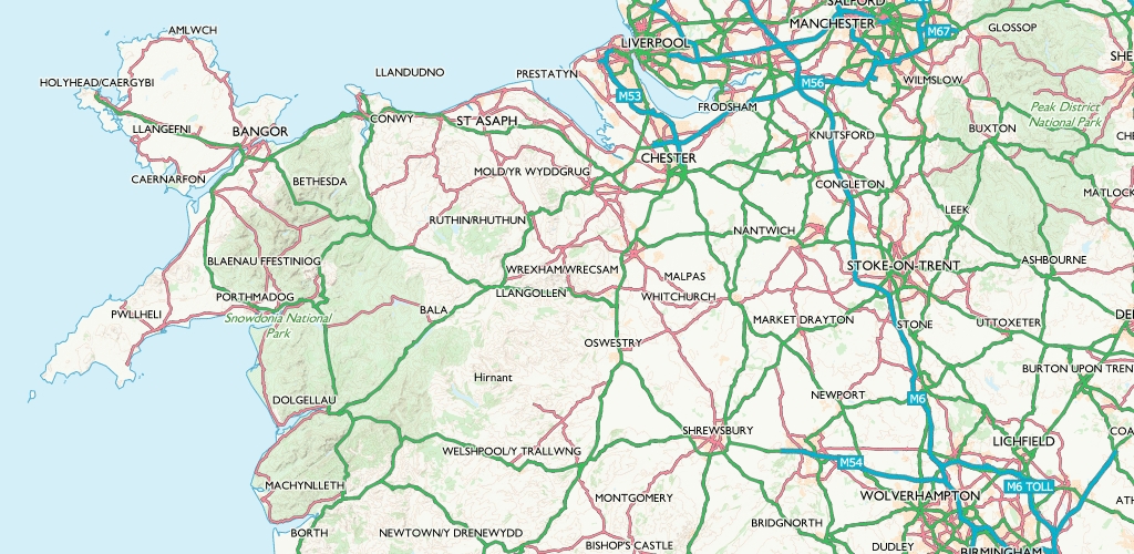 Road: A familiar style with a focus on transport networks - specifically highlighting the Great British road network. High in contrast with lots of detail and colour, this style will fit many uses and satisfy those who are familiar with traditional OS maps.