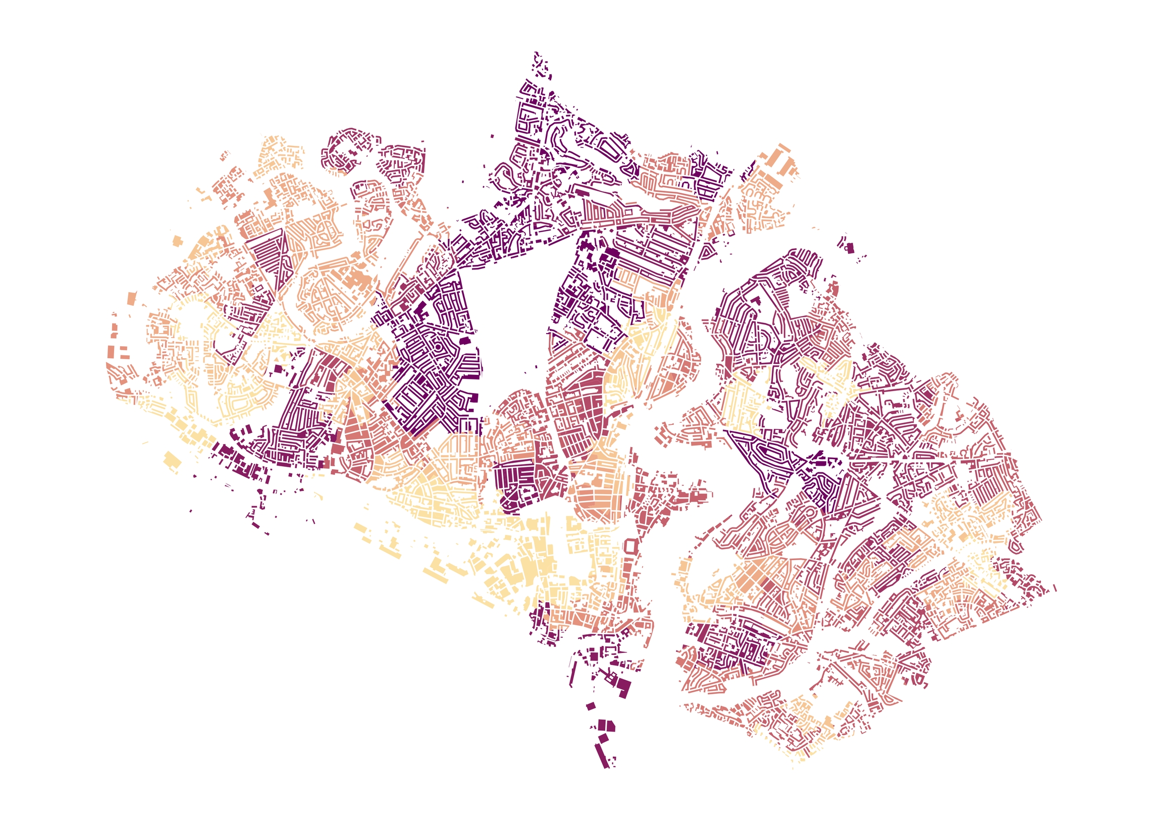 Visualising the spatial distribution of Lower Layer Super Output Area (LSOA) median price paid deciles for residential property sold between 1995 and 2019 for a local authority district (LAD) in England or Wales.